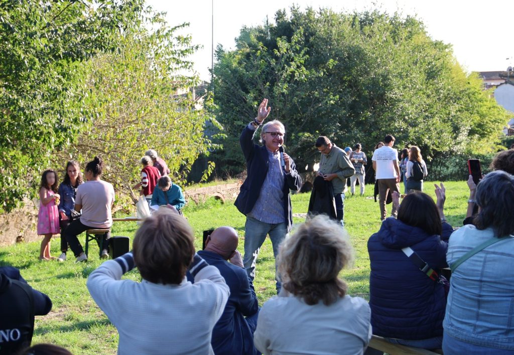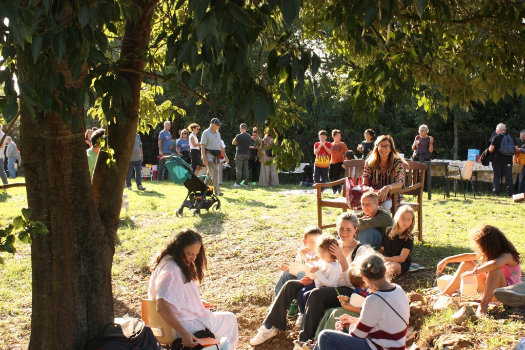 Sulla sinistra, invece, c’è un piccolo anfiteatro, perfetto per letture condivise, teatro ravvicinato oppure per stendersi all’ombra di un altissimo bagolaro.
