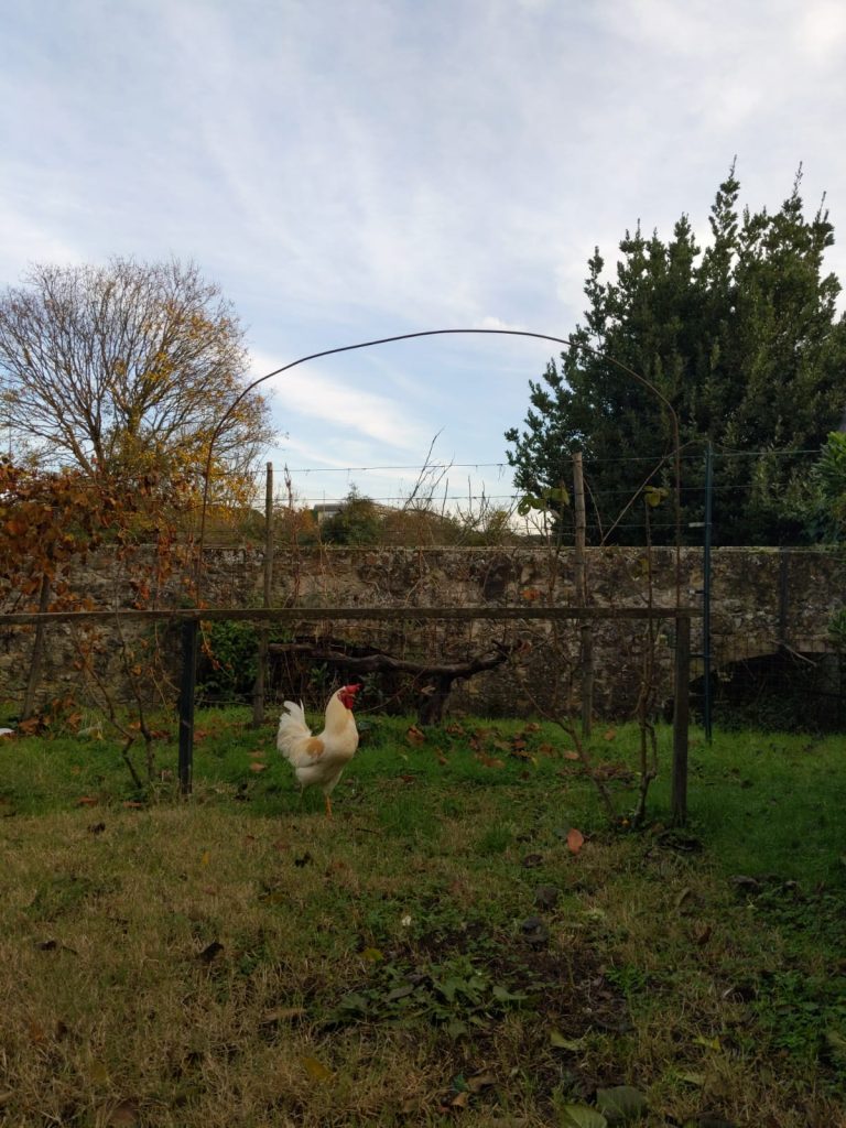 Sono poi disponibili vari ceppi di legno, offerti dal CSA exEmerson, per costruire percorsi e giochi. - Le persone più attente, avranno notato che in fondo al Salotto Verde c’è una siepe, e dietro la siepe c’è un orto. Il signor Paolo si è preso cura di questo orto per quasi 20 anni e adesso si è reso disponibile nel condividerlo con noi per curarlo insieme. Nell’orto ci sono vari alberi da frutto, una vite robusta e tanto terreno per un grande orto collettivo. A farci compagnia c’è anche un amichevole gallo e due simpatiche galline.